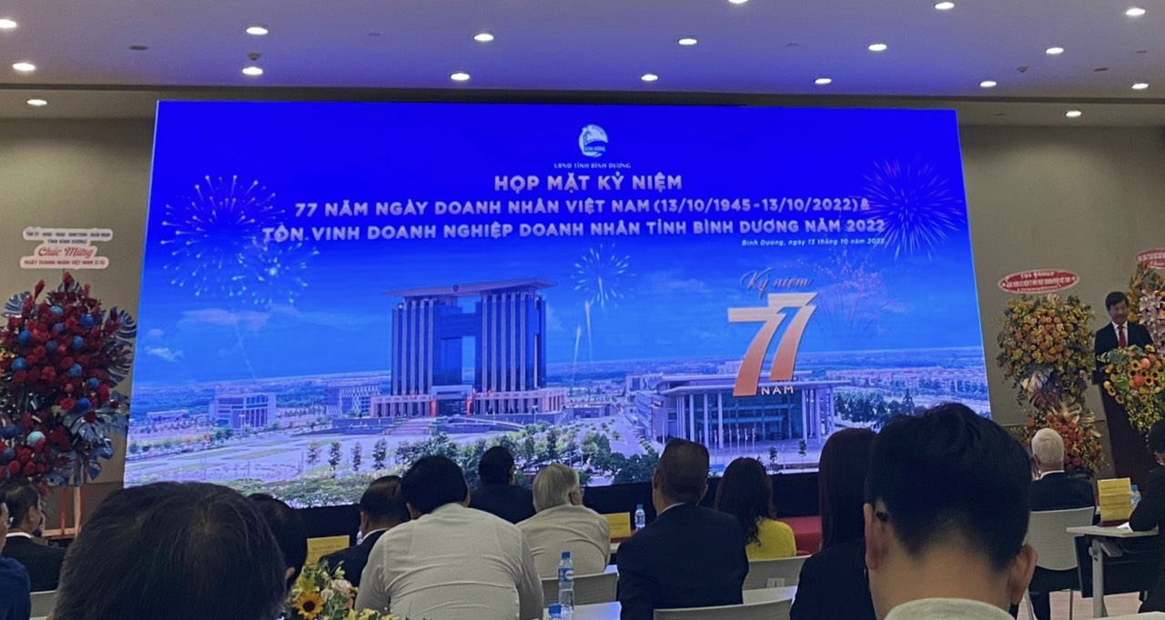 TTĐT - Nhân kỷ niệm 77 năm Ngày Doanh nhân Việt Nam (13/10/1945 - 13/10/2022), sáng 13-10, tại Trung tâm Hội nghị và Triển lãm tỉnh , Tỉnh ủy - HĐND - UBND - Ủy ban MTTQ Việt Nam tỉnh tổ chức Họp mặt, tôn vinh doanh nghiệp, doanh nhân tỉnh Bình Dương năm 2022.