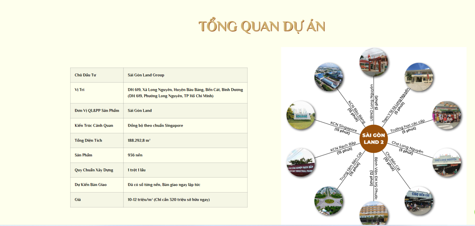 Sài Gòn Land 2 dự án được quy hoạch bài bản, tọa lạc tại Phường Long Nguyên, TP. Hồ Chí Minh, đường nhựa nội bộ rộng 6m, vỉa hè rộng rãi, hệ thống điện nước âm hiện đại. Dự án sẽ cung ứng cho thị trường bất động sản Bến Cát 953 căn nhà liên kế bên cạnh chuỗi tiện ích, hạ tầng và cảnh quan đẹp mắt được quy hoạch, thiết kế theo chuẩn Khu đô thị Singapore.